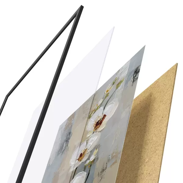 Plakat składa się z ramy, pleksi, wydrukowanego obrazu i podkładu z płyty wiórowej. Plakat można natychmiast zawiesić na ścianie dzięki uchwytom z tyłu.