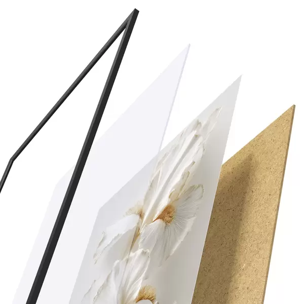 Plakat składa się z ramy, pleksi, wydrukowanego obrazu i podkładu z płyty wiórowej. Plakat można natychmiast zawiesić na ścianie dzięki uchwytom z tyłu.