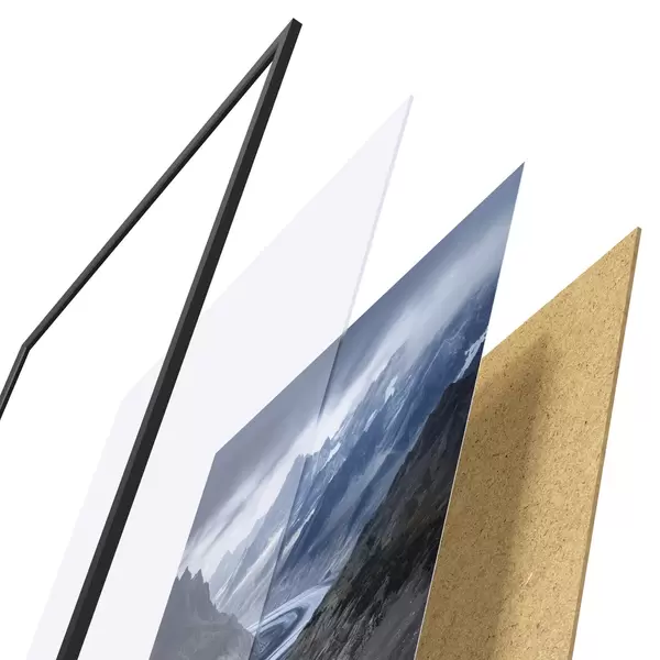 Plakat składa się z ramy, pleksi, wydrukowanego obrazu i podkładu z płyty wiórowej. Plakat można natychmiast zawiesić na ścianie dzięki uchwytom z tyłu.