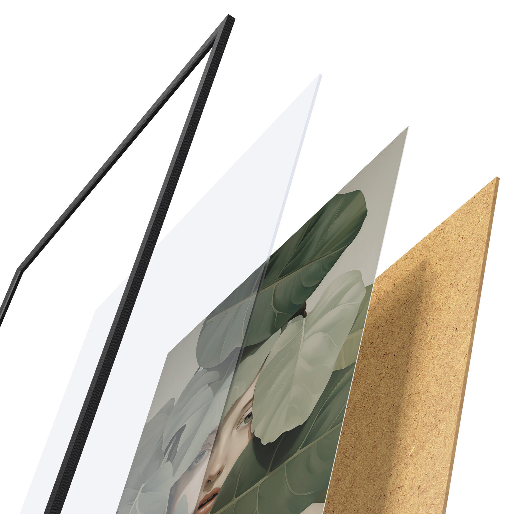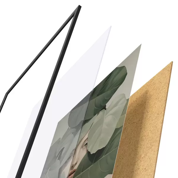 Plakat składa się z ramy, pleksi, wydrukowanego obrazu i podkładu z płyty wiórowej. Plakat można natychmiast zawiesić na ścianie dzięki uchwytom z tyłu.
