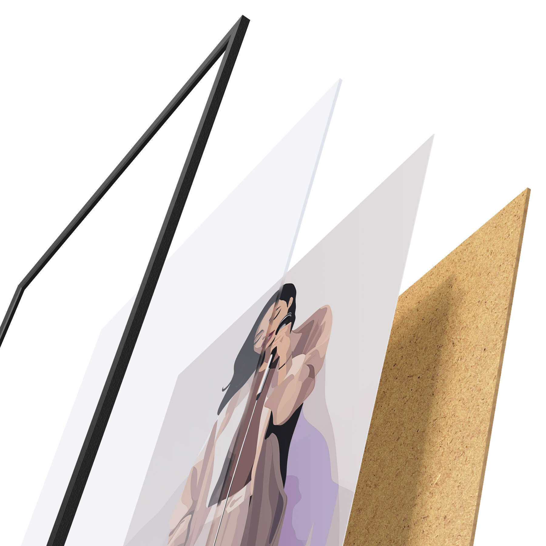 Plakat składa się z ramy, pleksi, wydrukowanego obrazu i podkładu z płyty wiórowej. Plakat można natychmiast zawiesić na ścianie dzięki uchwytom z tyłu.