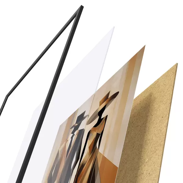 Plakat składa się z ramy, pleksi, wydrukowanego obrazu i podkładu z płyty wiórowej. Plakat można natychmiast zawiesić na ścianie dzięki uchwytom z tyłu.