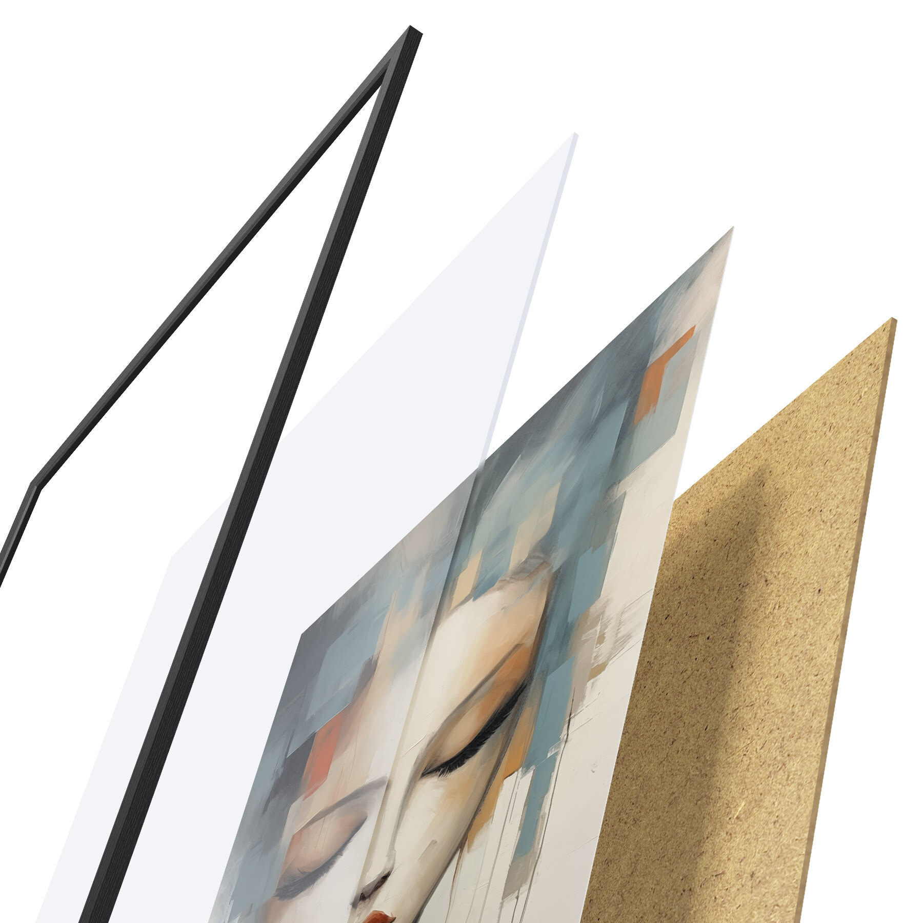 Plakat składa się z ramy, pleksi, wydrukowanego obrazu i podkładu z płyty wiórowej. Plakat można natychmiast zawiesić na ścianie dzięki uchwytom z tyłu.