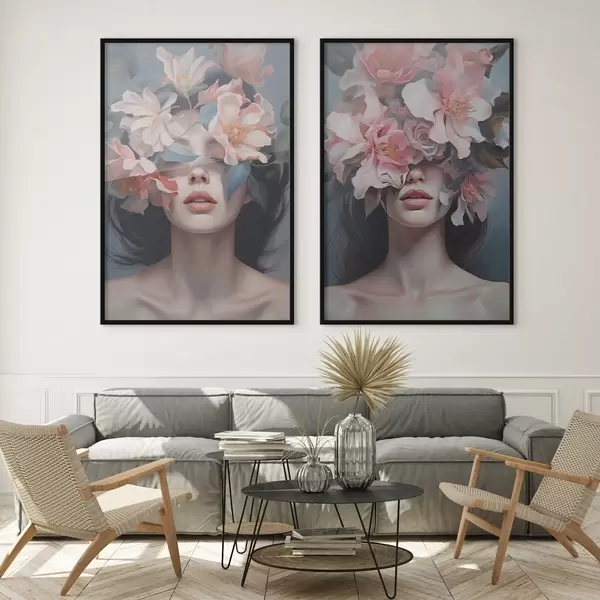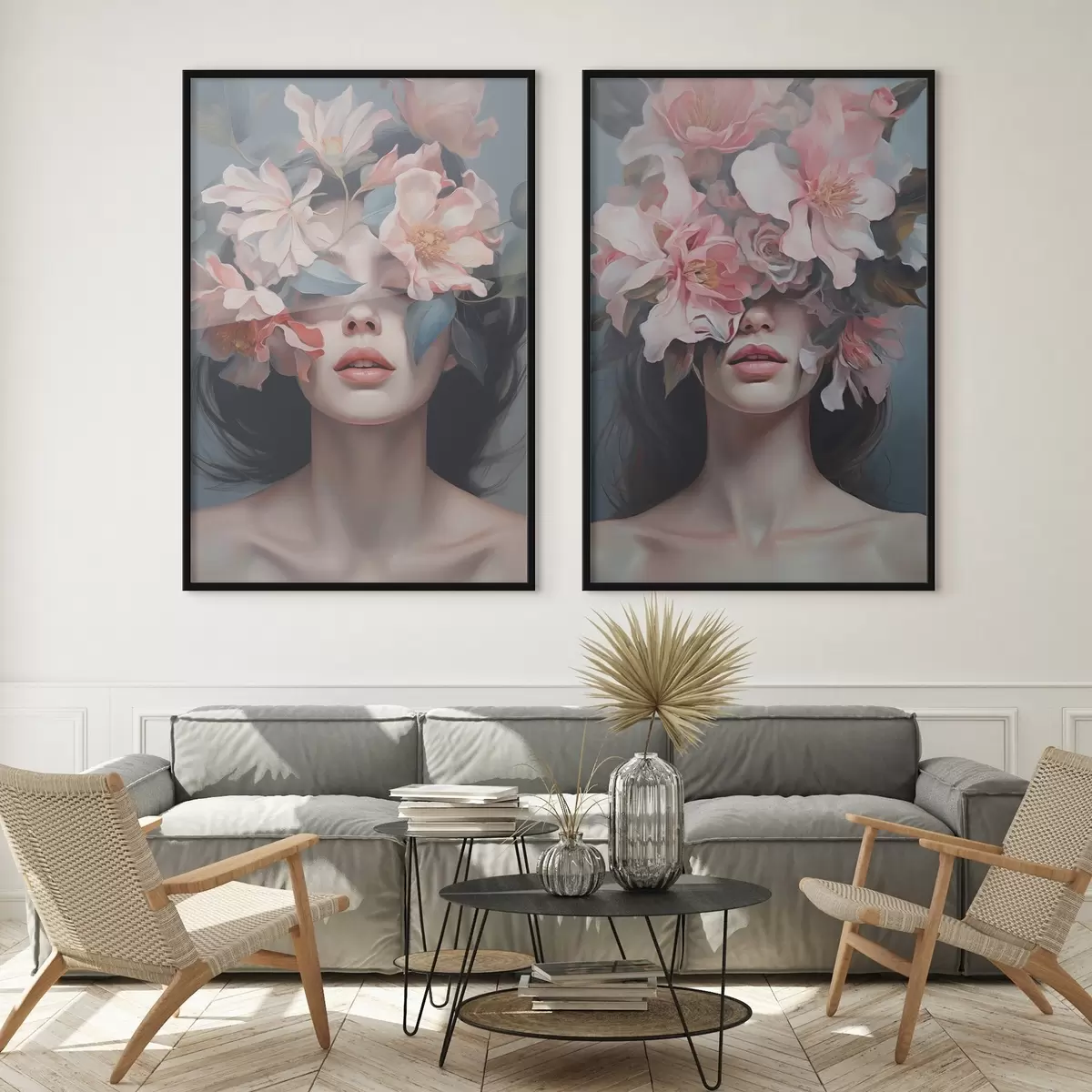 Plakat Abstrakcyjny portret kobiety z kwiatami d01221