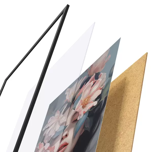 Plakat składa się z ramy, pleksi, wydrukowanego obrazu i podkładu z płyty wiórowej. Plakat można natychmiast zawiesić na ścianie dzięki uchwytom z tyłu.