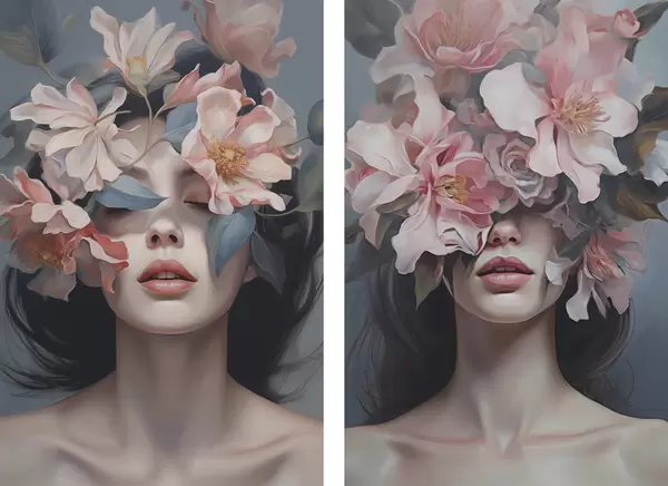 Plakat Abstrakcyjny portret kobiety z kwiatami d01221