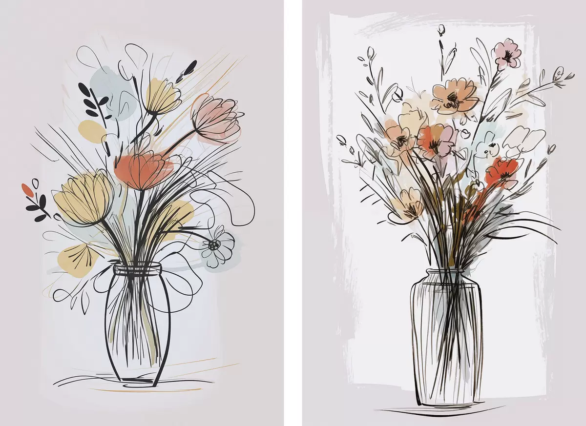 Poster Kwiaty w wazonie imitującym rysunek Nr d01224