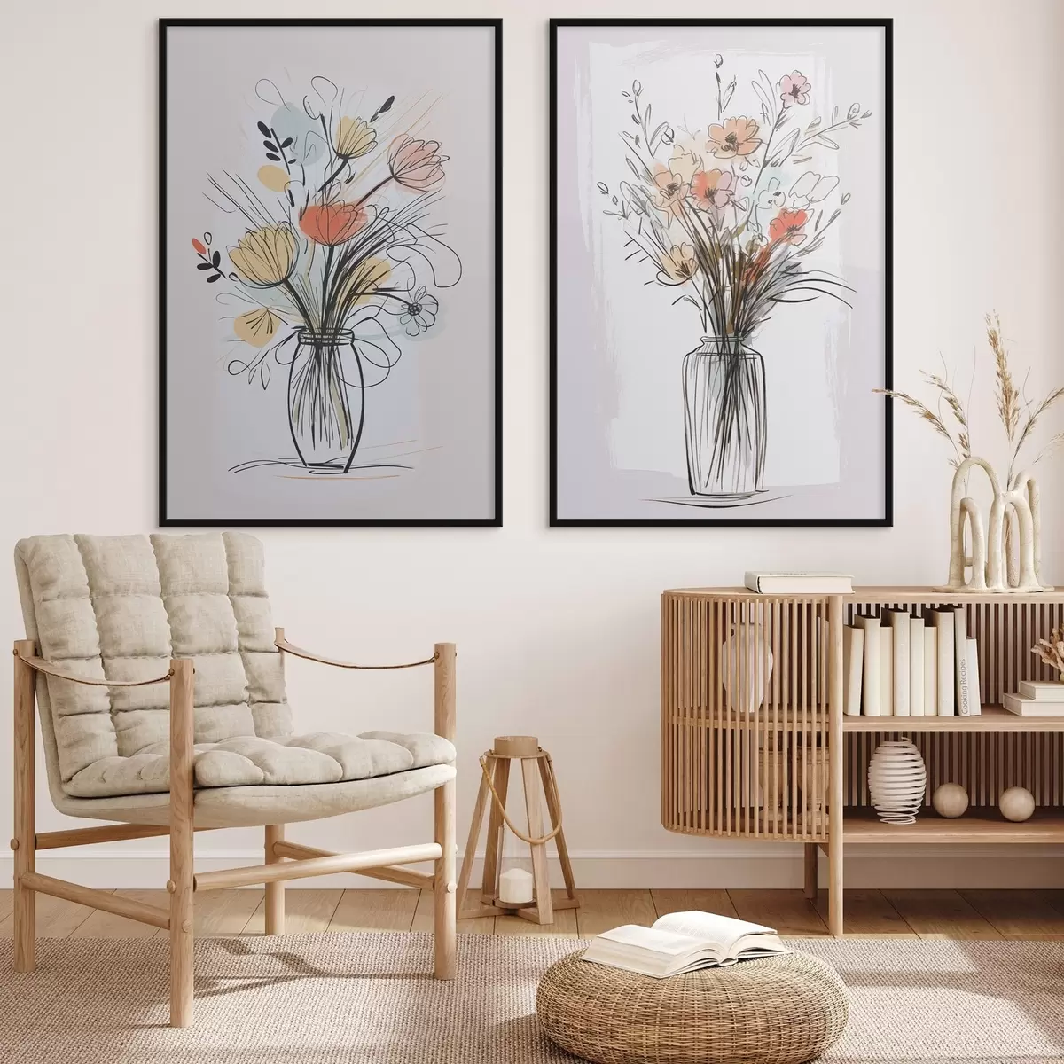 Plakat Kwiaty w wazonie imitującym rysunek d01224