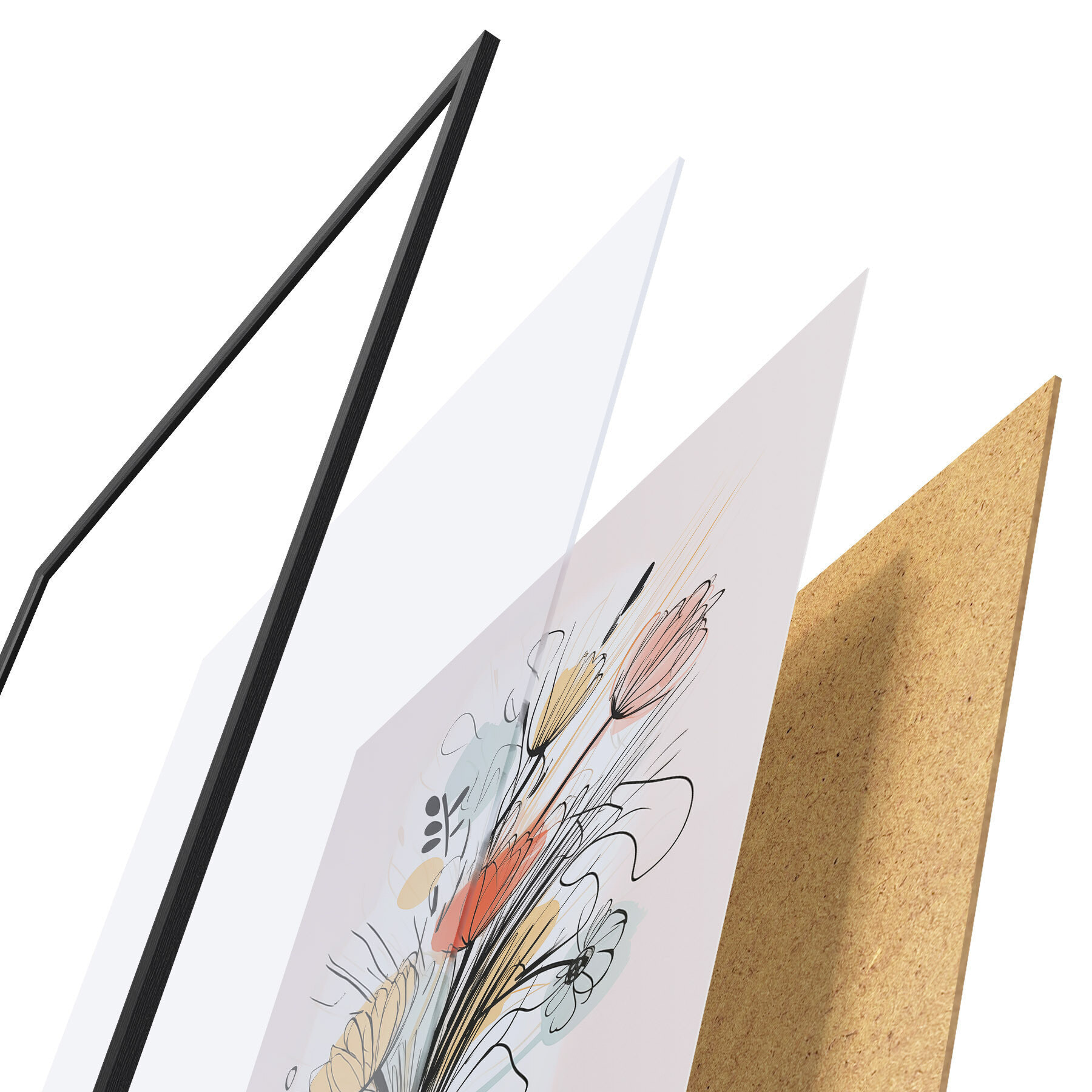 Plakat składa się z ramy, pleksi, wydrukowanego obrazu i podkładu z płyty wiórowej. Plakat można natychmiast zawiesić na ścianie dzięki uchwytom z tyłu.