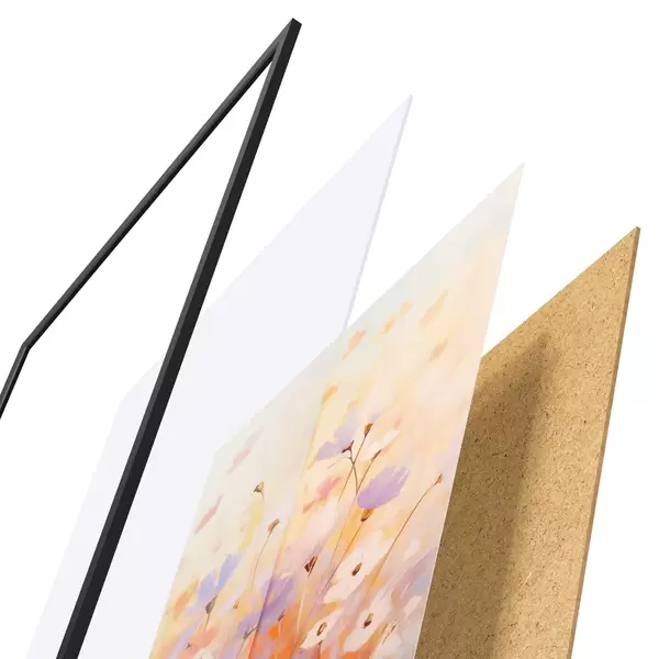 Plakat składa się z ramy, pleksi, wydrukowanego obrazu i podkładu z płyty wiórowej. Plakat można natychmiast zawiesić na ścianie dzięki uchwytom z tyłu.