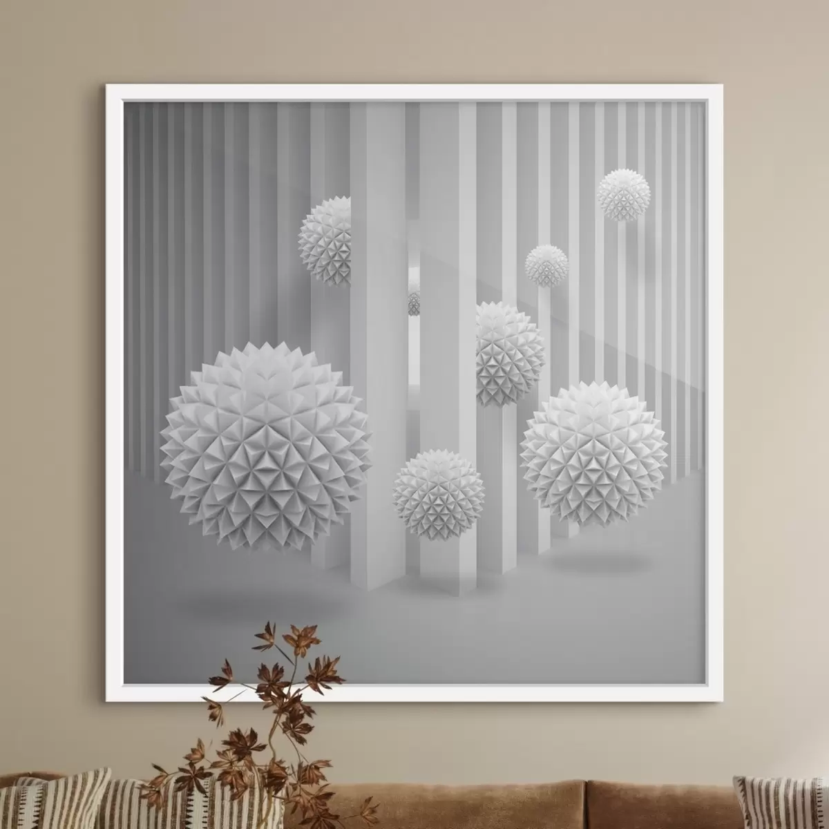 Plakat składa się z ramy, pleksi, wydrukowanego obrazu i podkładu z płyty wiórowej. Plakat można natychmiast zawiesić na ścianie dzięki uchwytom z tyłu.