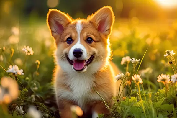 Poster Szczeniak Corgi w dzikich kwiatach Nr f33532