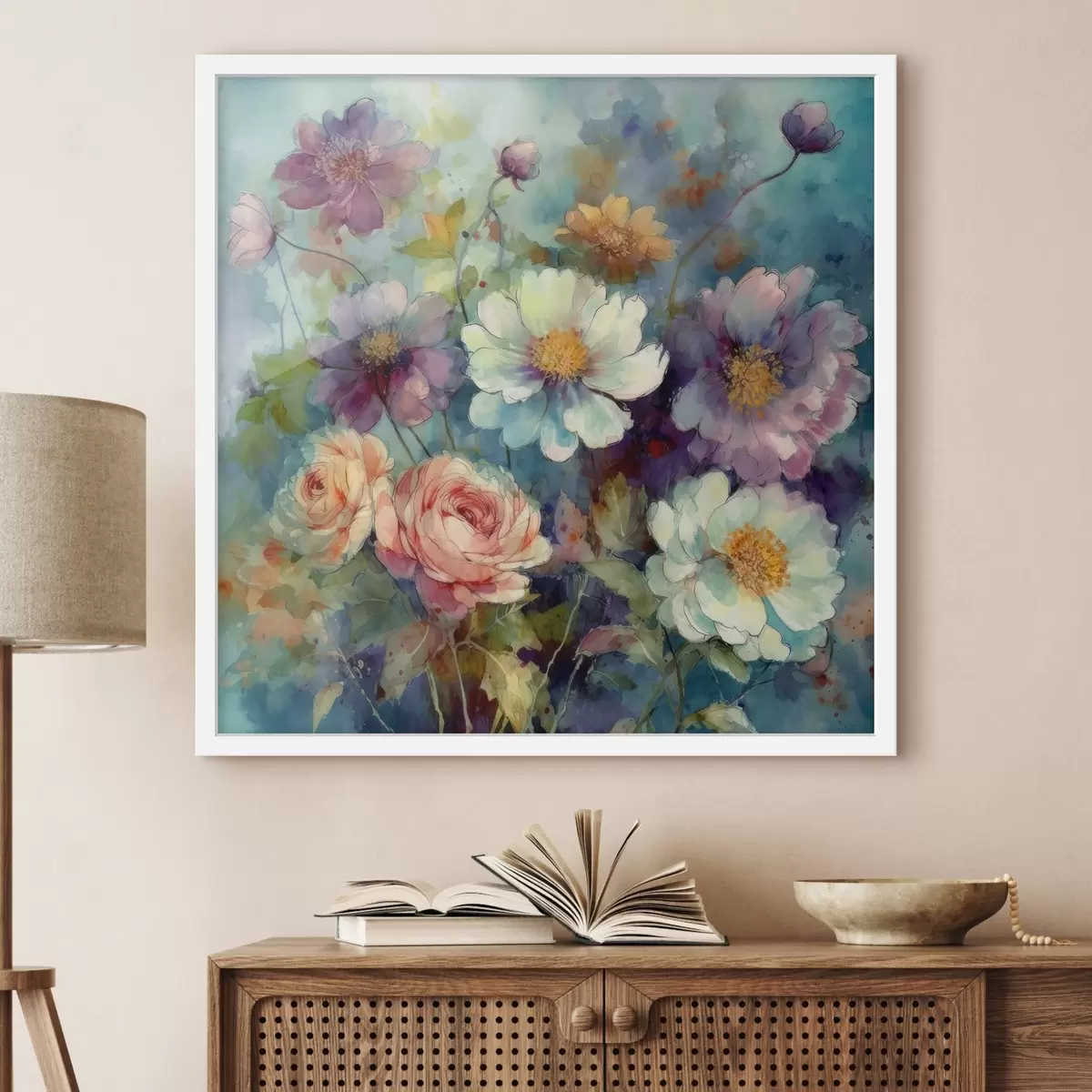 Sprzedajemy obrazy na blejtramie - jest to drewniana rama, na którą naciągnięte jest płótno. Tego obrazu nie trzeba oprawiać; można go powiesić bezpośrednio na ścianie.