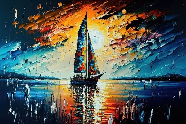 Plakat Żeglowanie w stronę tętniącego życiem zachodu słońca f38052