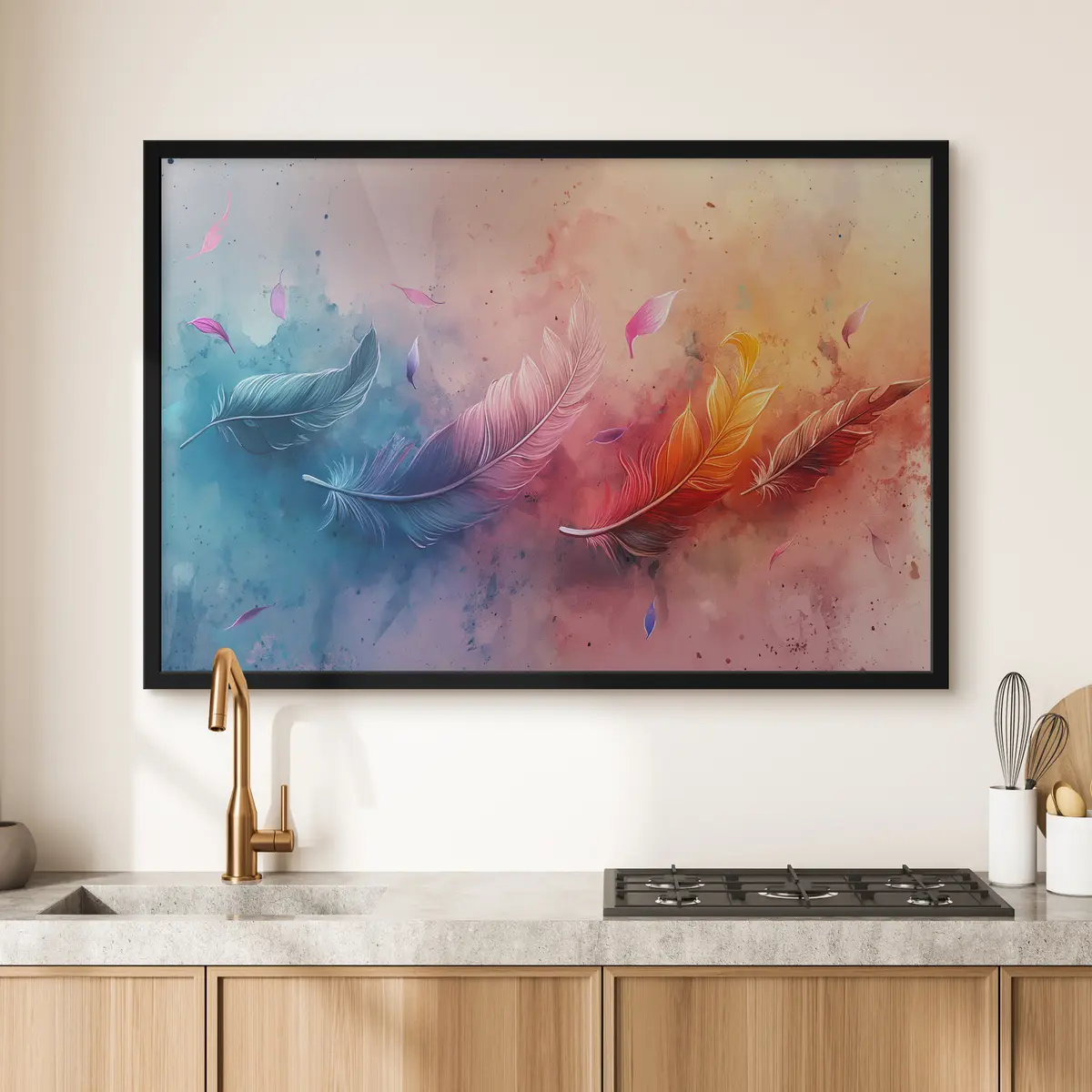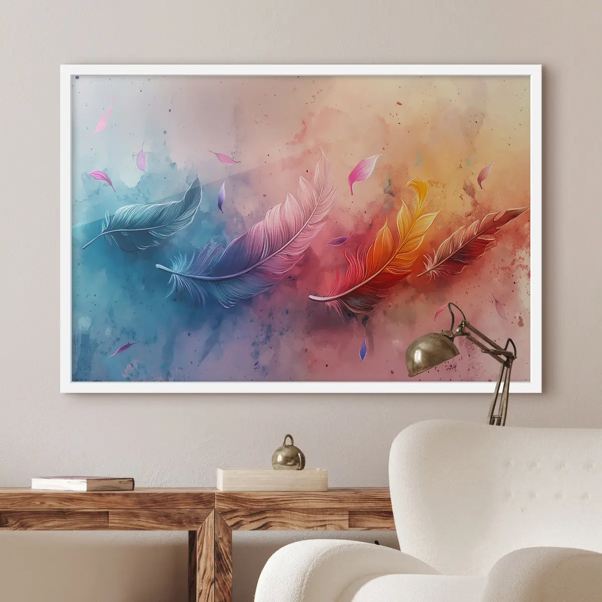 Poster Kolorowe pióra na tle akwareli Nr f38095