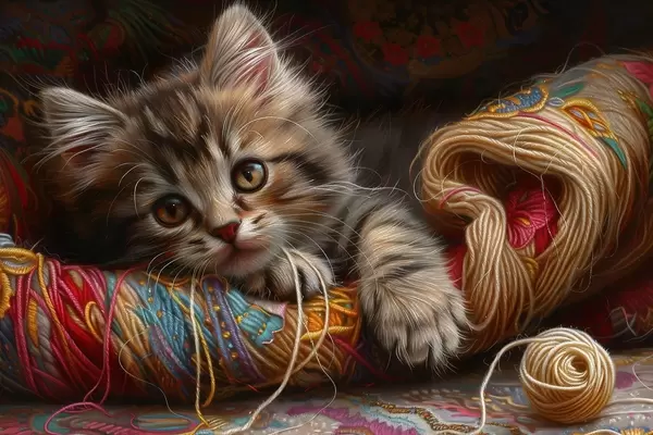 Poster Kot leżący na kłębku wełny Nr f38465