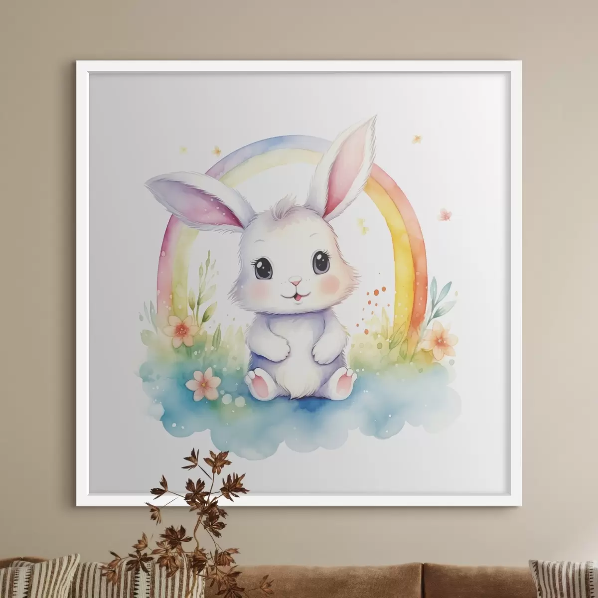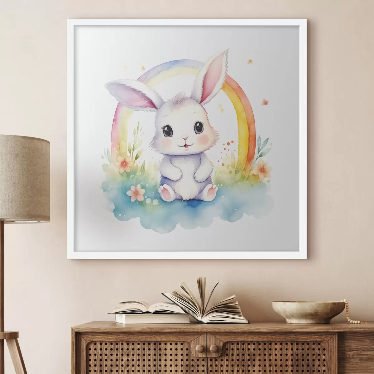 Poster Uroczy króliczek pod tęczą Nr f38940