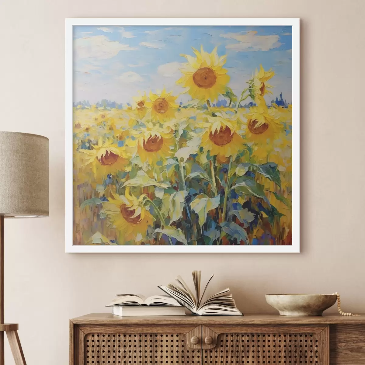 Poster Obraz olejny pola słoneczników, żółty i niebieski Nr f38953