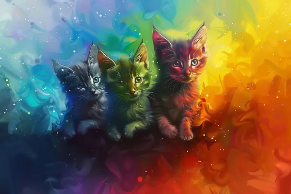 Poster Kolorowe kocięta w abstrakcyjnym świecie Nr f39083