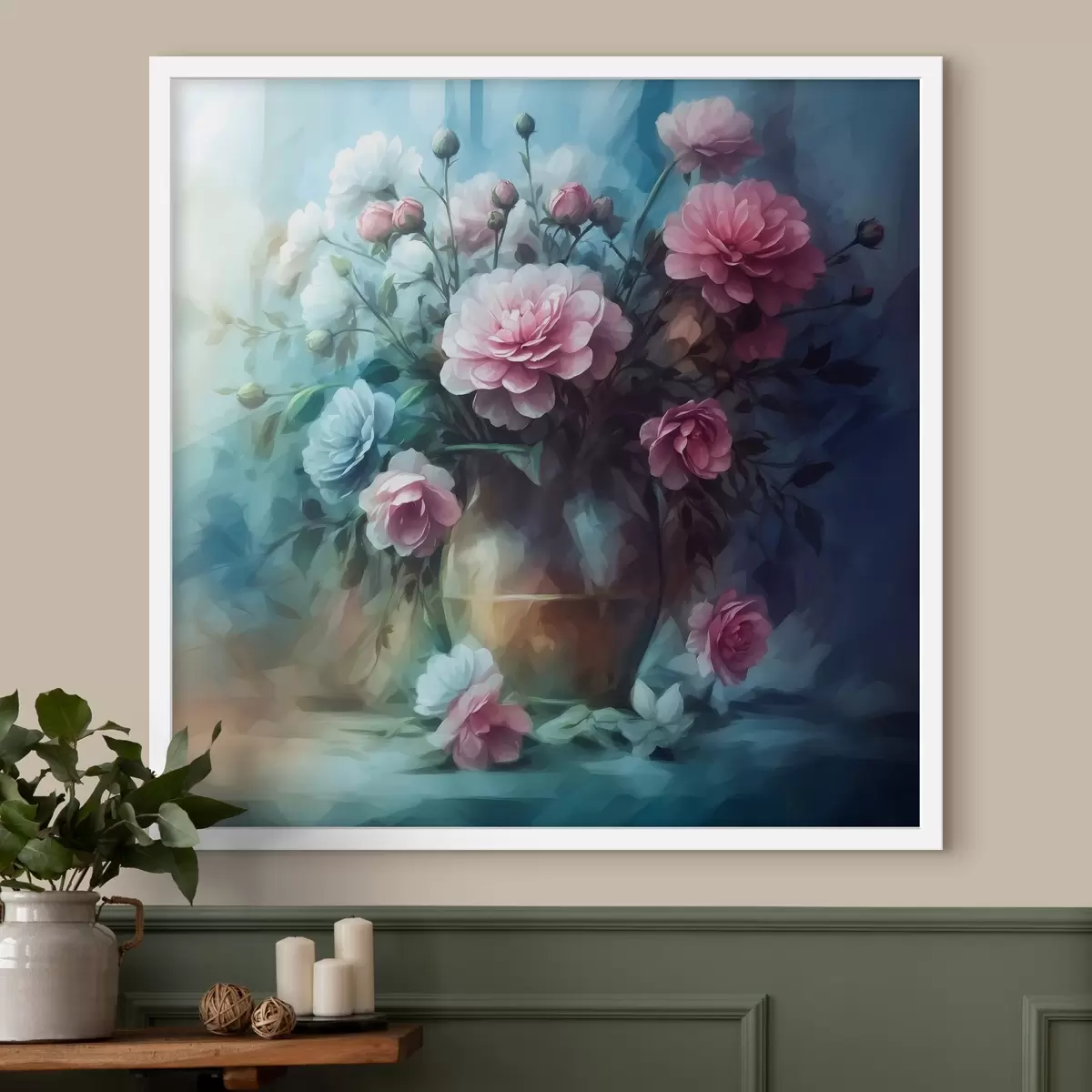 Plakat Kwiaty w wazonie na pochmurnym niebieskim tle f39164