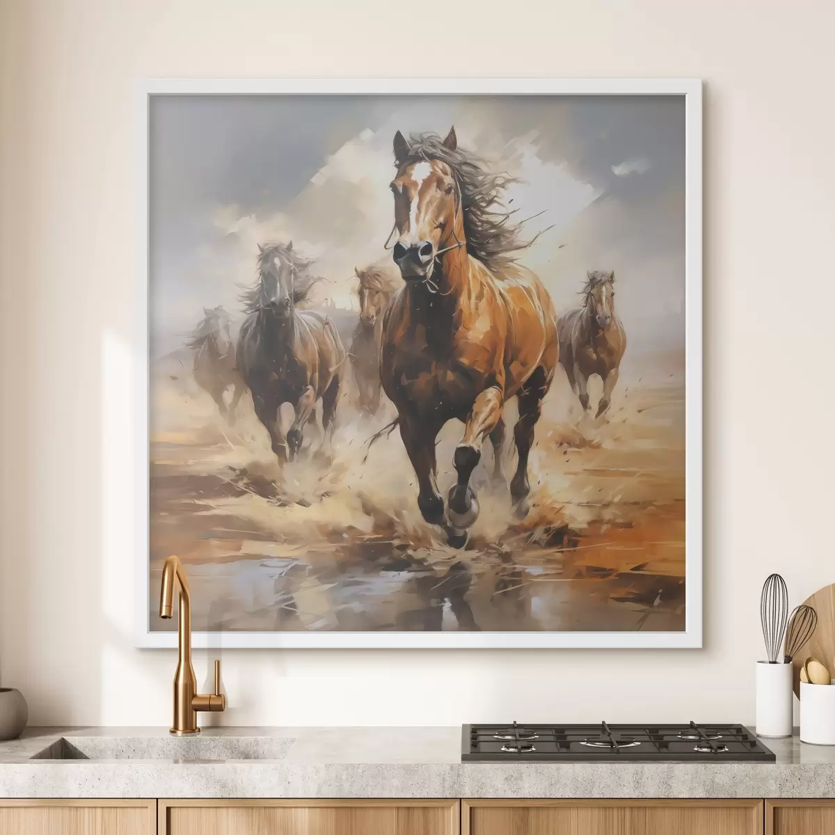 Poster Konie galopujące po łące obraz olejny Nr f39436