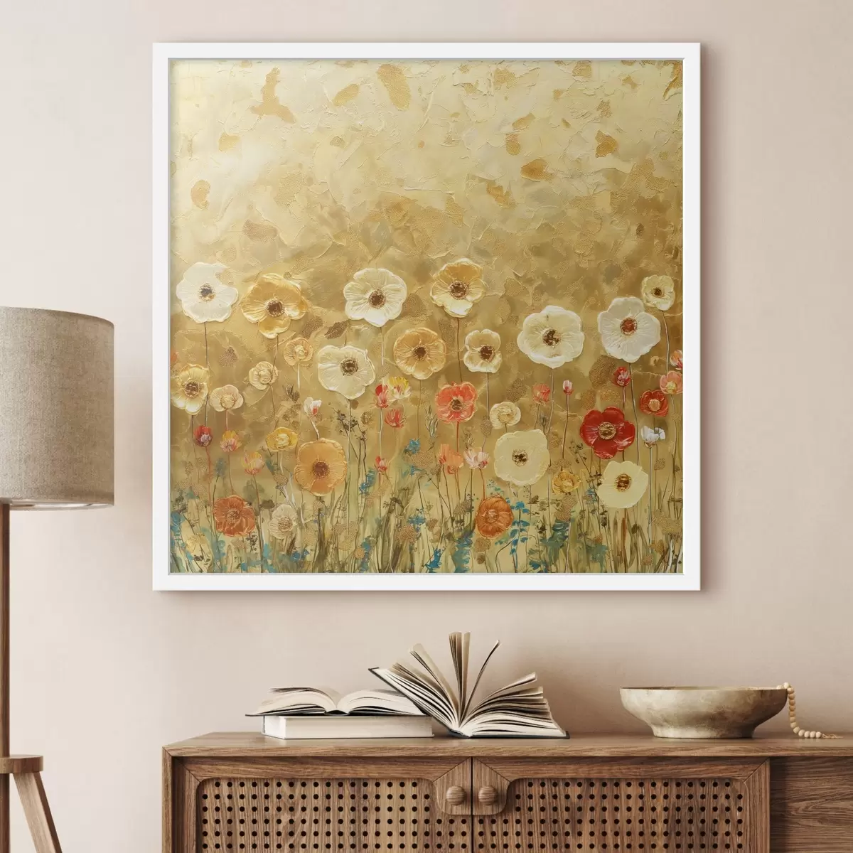 Poster Łąka w stylu Klimta: delikatne pastelowe kwiaty o stapianej fakturze Nr f39464