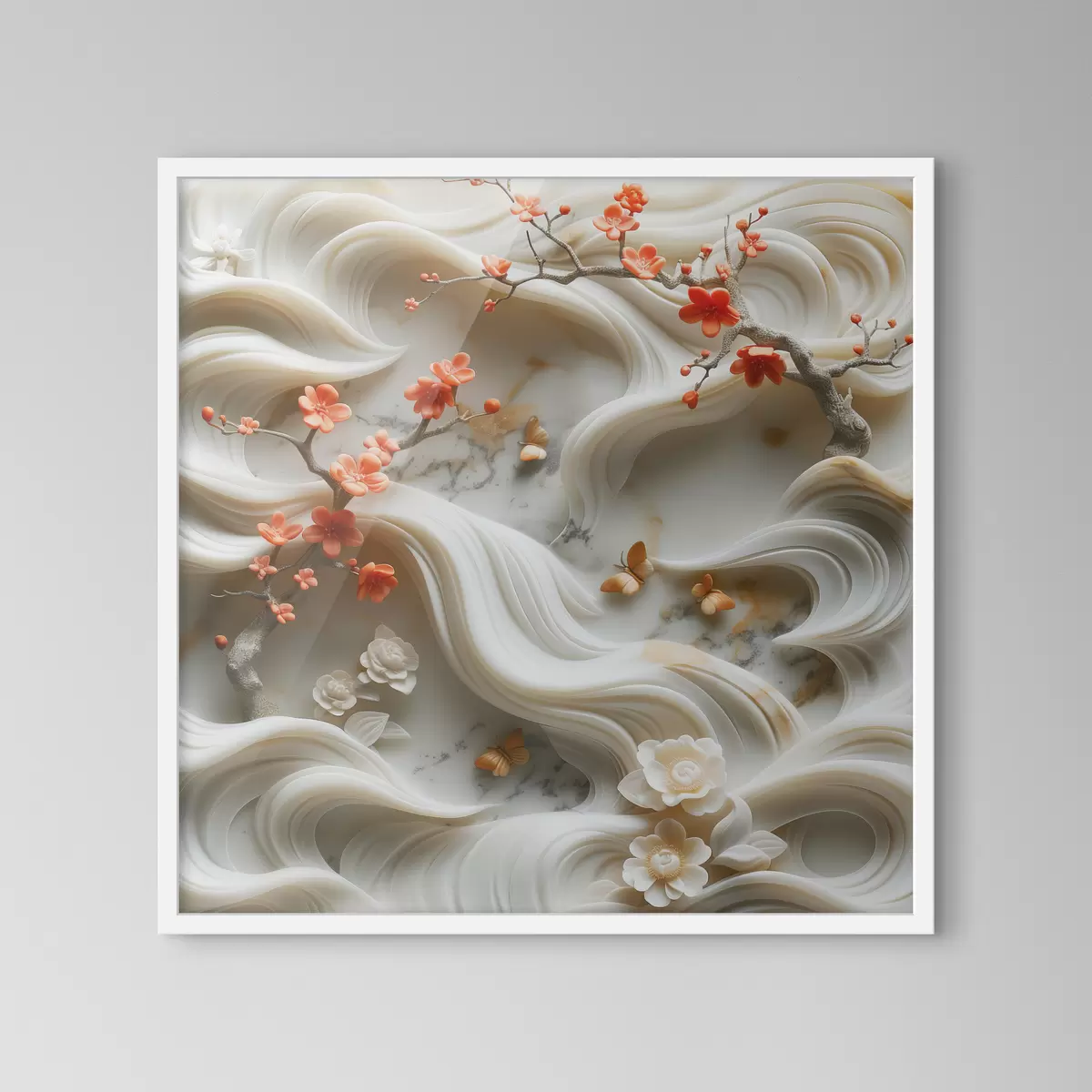 Plakat Niebiańska scena ogrodowa 3D wyrzeźbiona w białym marmurze z płynącą florą i fauną f39727