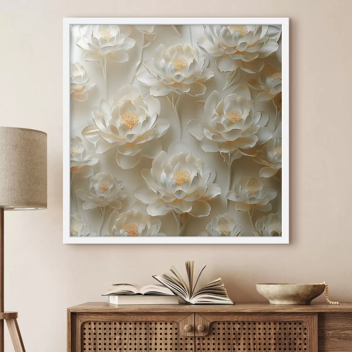 Plakat Delikatne porcelanowe białe kwiaty lotosu f39744