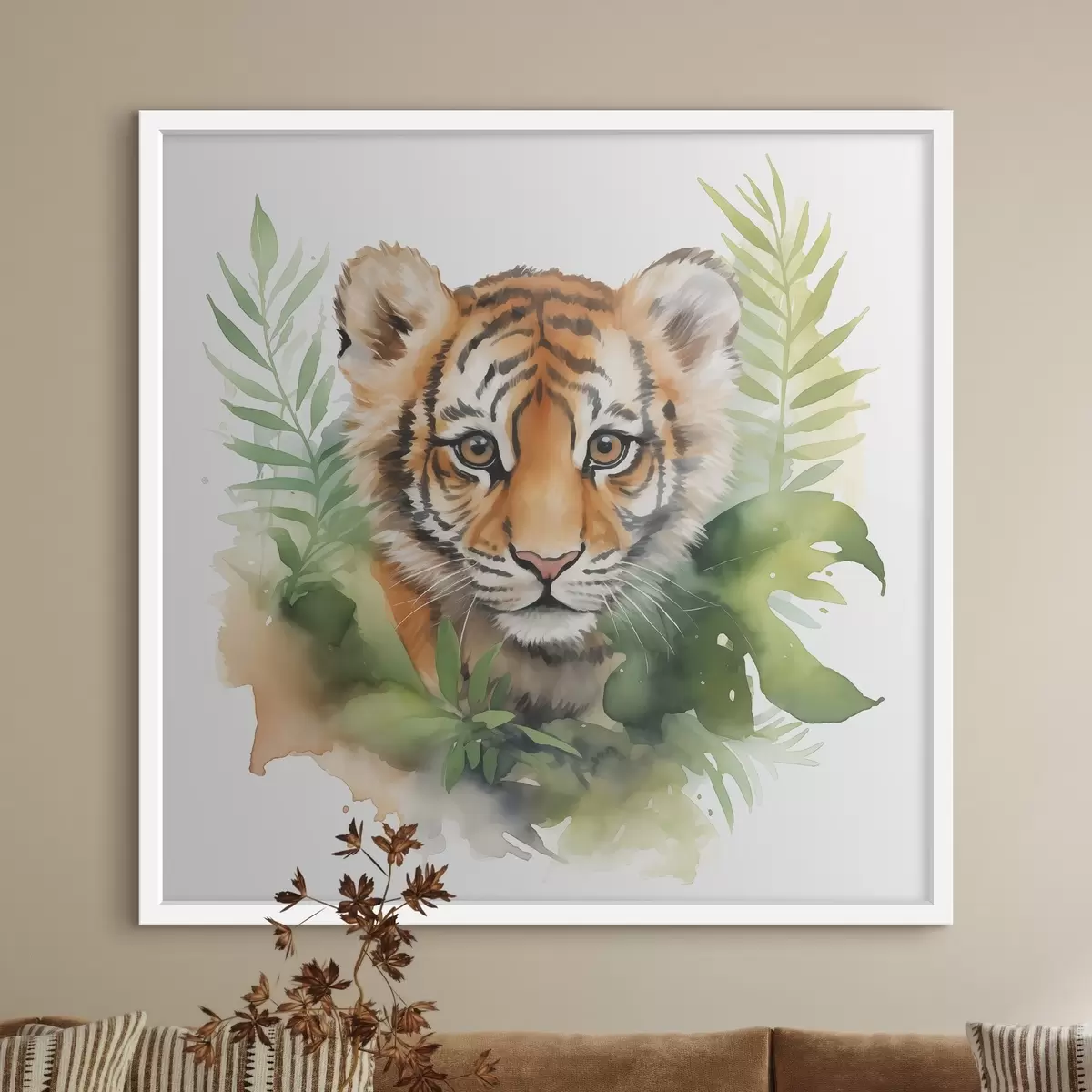 Poster Portret tygrysa w tropikalnych liściach akwarela Nr f40090
