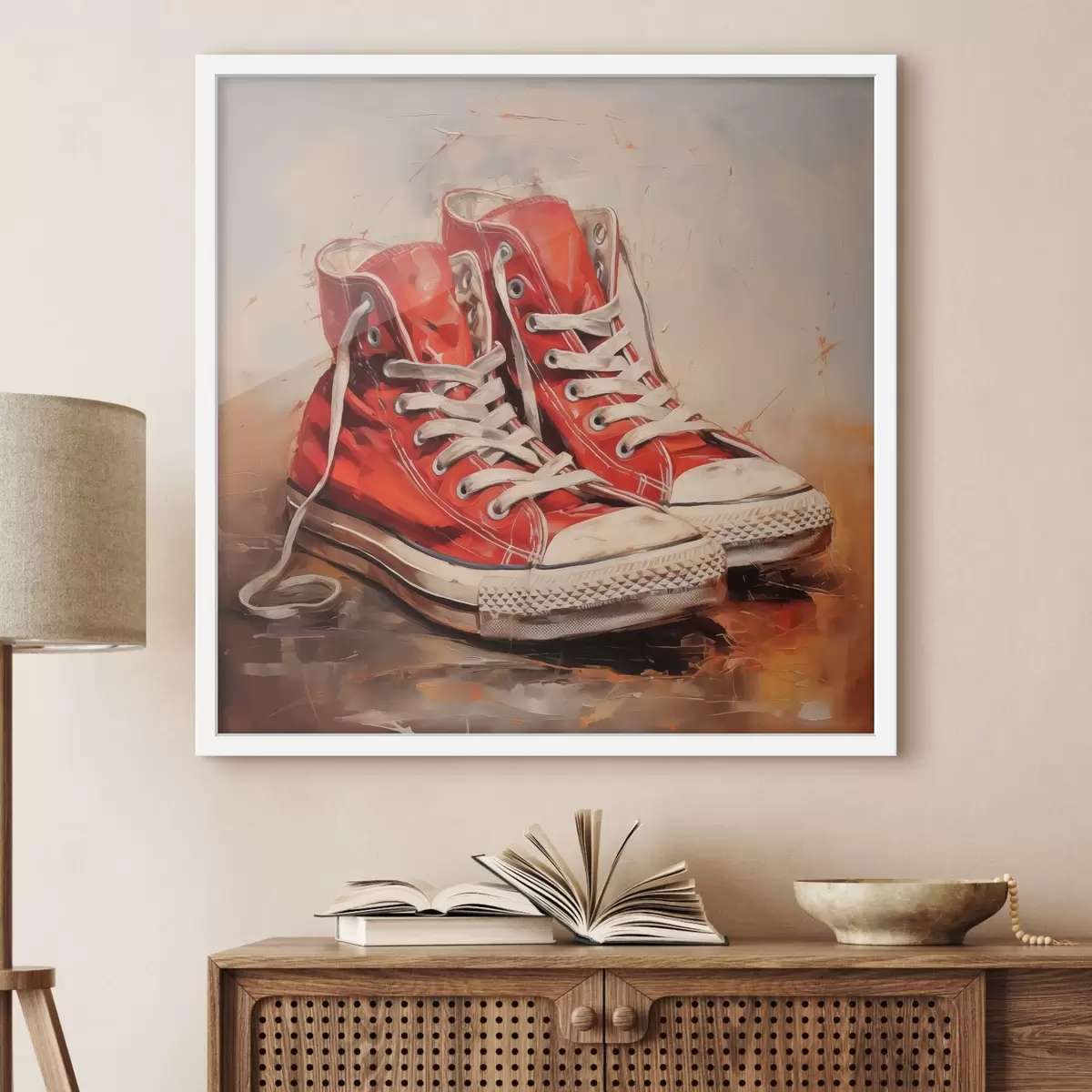 Poster Czerwone trampki z białymi sznurowadłami Nr f40219