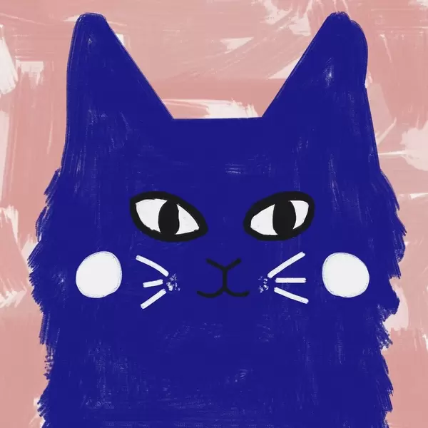 Poster Niebieski kot na różowym tle, szorstkie pociągnięcia, imitacja malarstwa Nr f41618