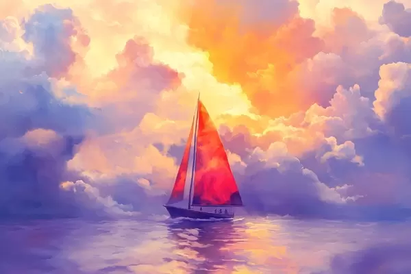 Plakat Łódź na tle zachodu słońca w stylu malarskim f41861