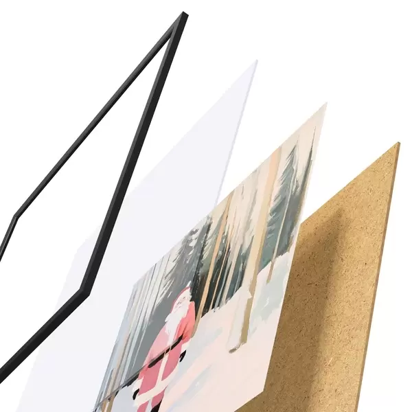 Plakat składa się z ramy, pleksi, wydrukowanego obrazu i podkładu z płyty wiórowej. Plakat można natychmiast zawiesić na ścianie dzięki uchwytom z tyłu.