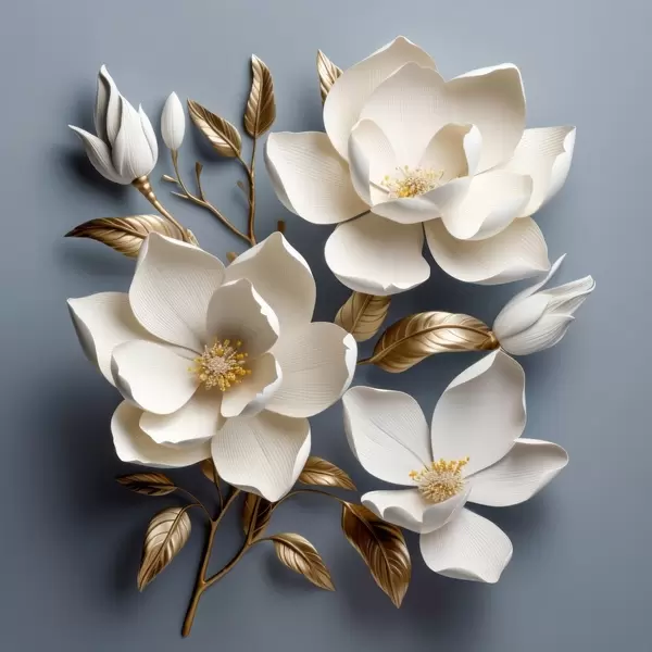 Poster Duże kwiaty na jasnoszarym tle Nr f42174