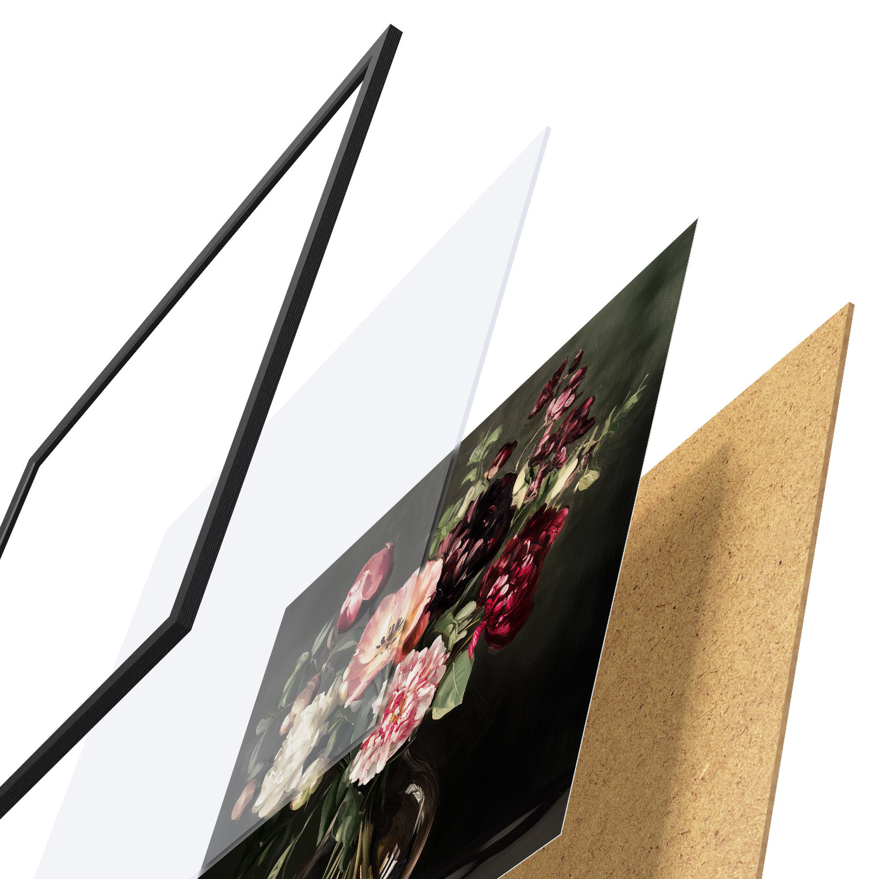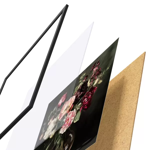 Plakat składa się z ramy, pleksi, wydrukowanego obrazu i podkładu z płyty wiórowej. Plakat można natychmiast zawiesić na ścianie dzięki uchwytom z tyłu.