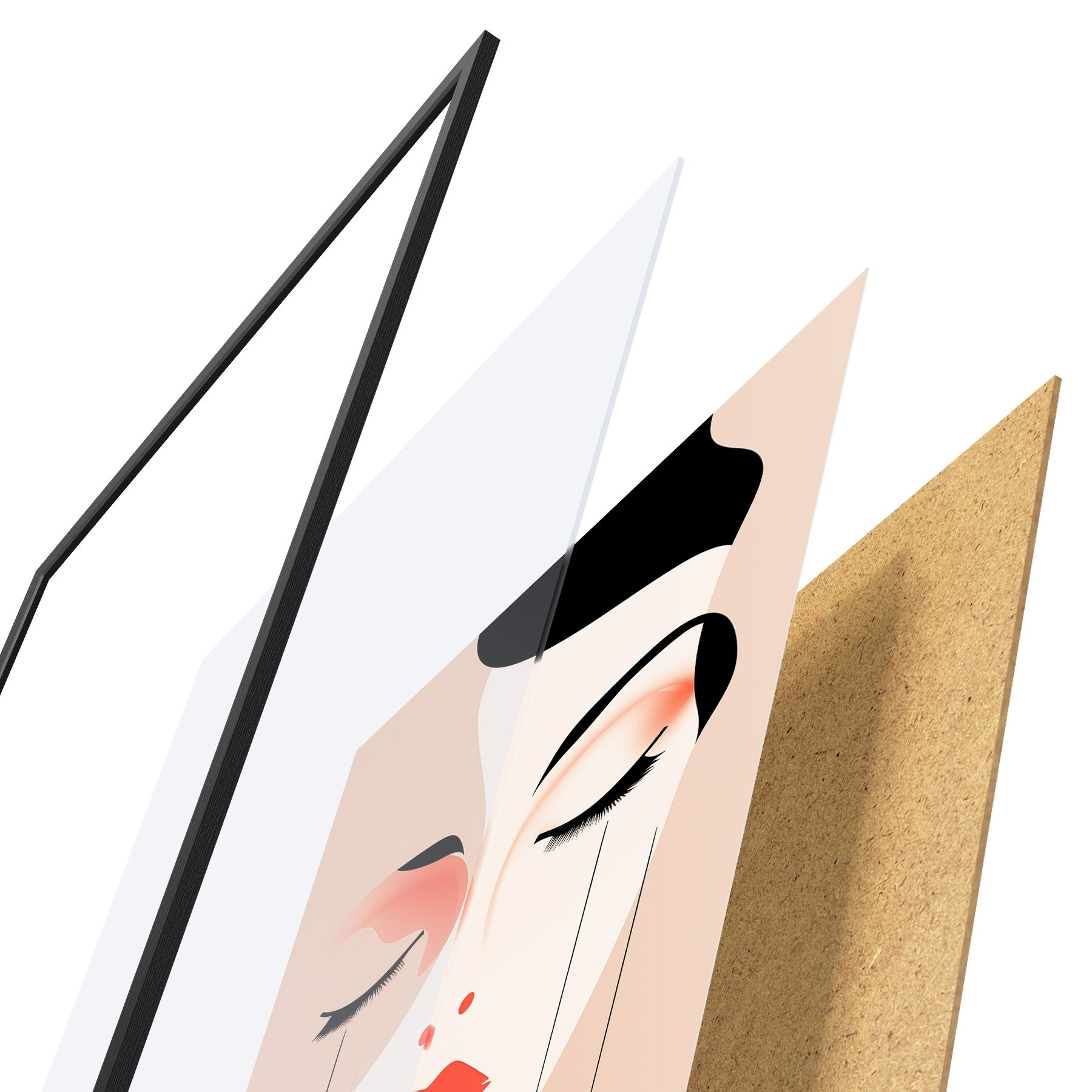 Plakat składa się z ramy, pleksi, wydrukowanego obrazu i podkładu z płyty wiórowej. Plakat można natychmiast zawiesić na ścianie dzięki uchwytom z tyłu.