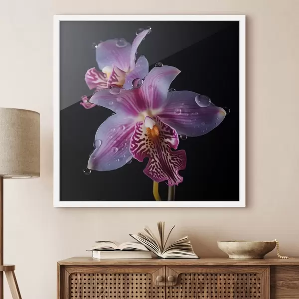 Poster Kropelki wody na płatkach orchidei Nr f44356