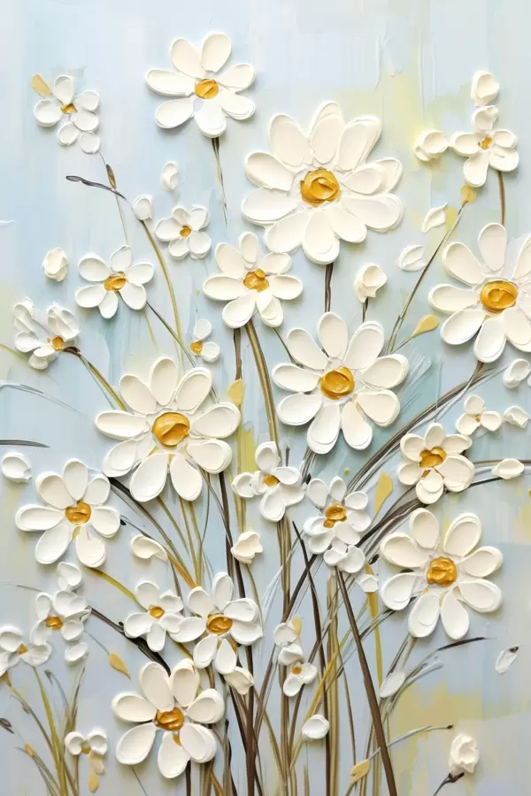 Poster Teksturowane stokrotki: sztuka impasto z ekspresyjnymi pociągnięciami pędzla Nr f45266