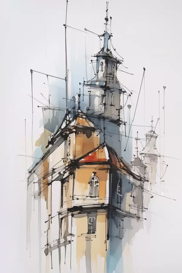 Poster Dom imitacja szkic i akwarela Nr f45765