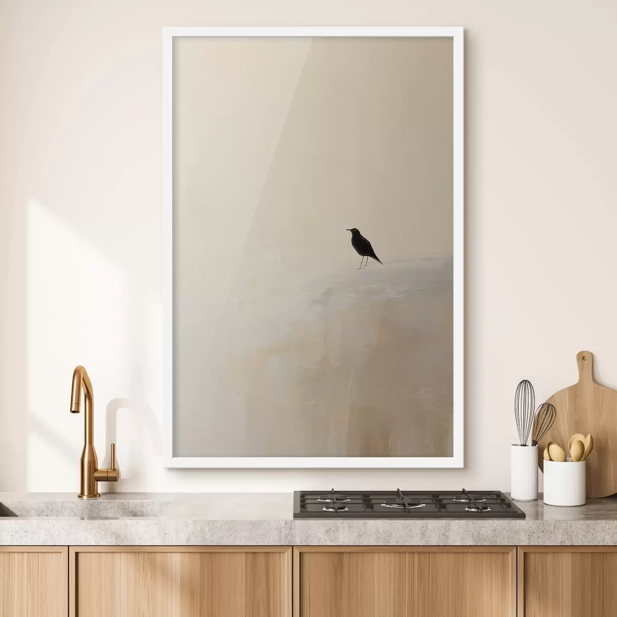 Plakat Samotny ptak na ciepłym beżowym tle f45882