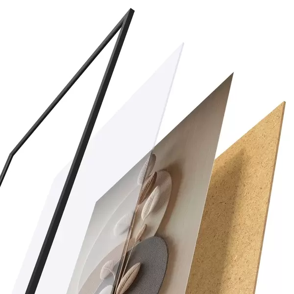 Plakat składa się z ramy, pleksi, wydrukowanego obrazu i podkładu z płyty wiórowej. Plakat można natychmiast zawiesić na ścianie dzięki uchwytom z tyłu.