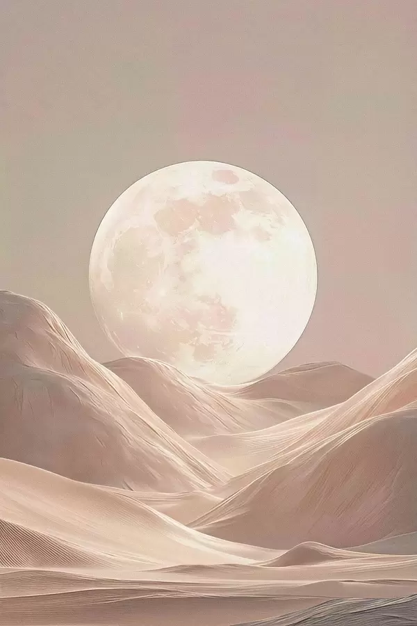 Plakat Księżyc nad piaszczystymi wydmami w różowych barwach f45892