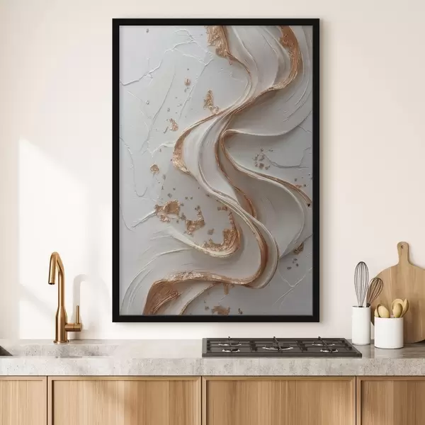Plakat Biało-żółte teksturowane pociągnięcia pędzlem z metalicznymi akcentami f45906