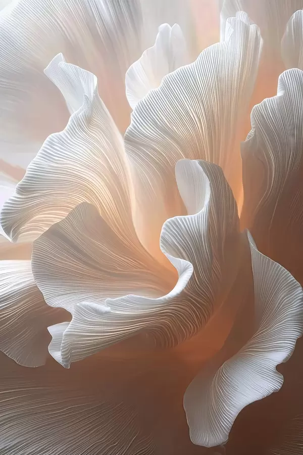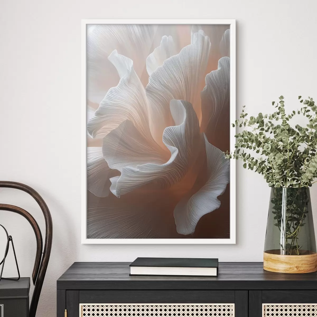 Poster Puszyste białe płatki z ciepłym brzoskwiniowym blaskiem Nr f45909
