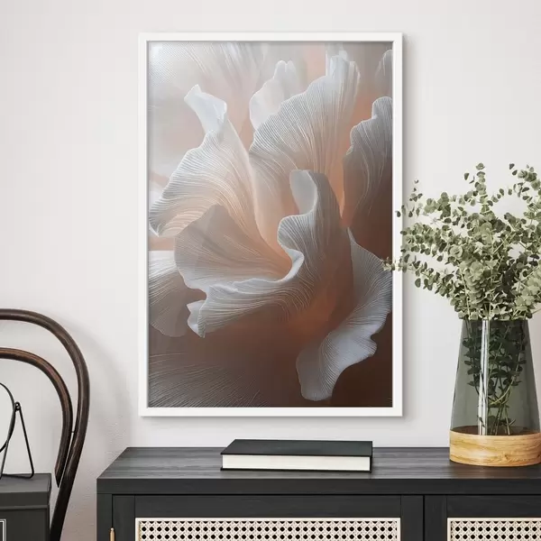 Plakat Puszyste białe płatki z ciepłym brzoskwiniowym blaskiem f45909