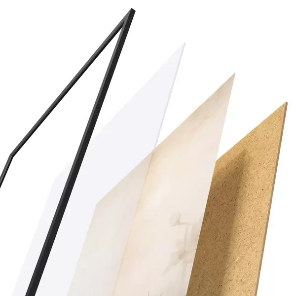 Plakat składa się z ramy, pleksi, wydrukowanego obrazu i podkładu z płyty wiórowej. Plakat można natychmiast zawiesić na ścianie dzięki uchwytom z tyłu.