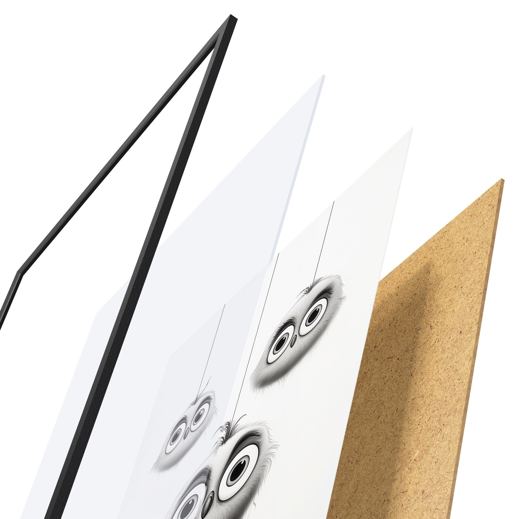 Plakat składa się z ramy, pleksi, wydrukowanego obrazu i podkładu z płyty wiórowej. Plakat można natychmiast zawiesić na ścianie dzięki uchwytom z tyłu.