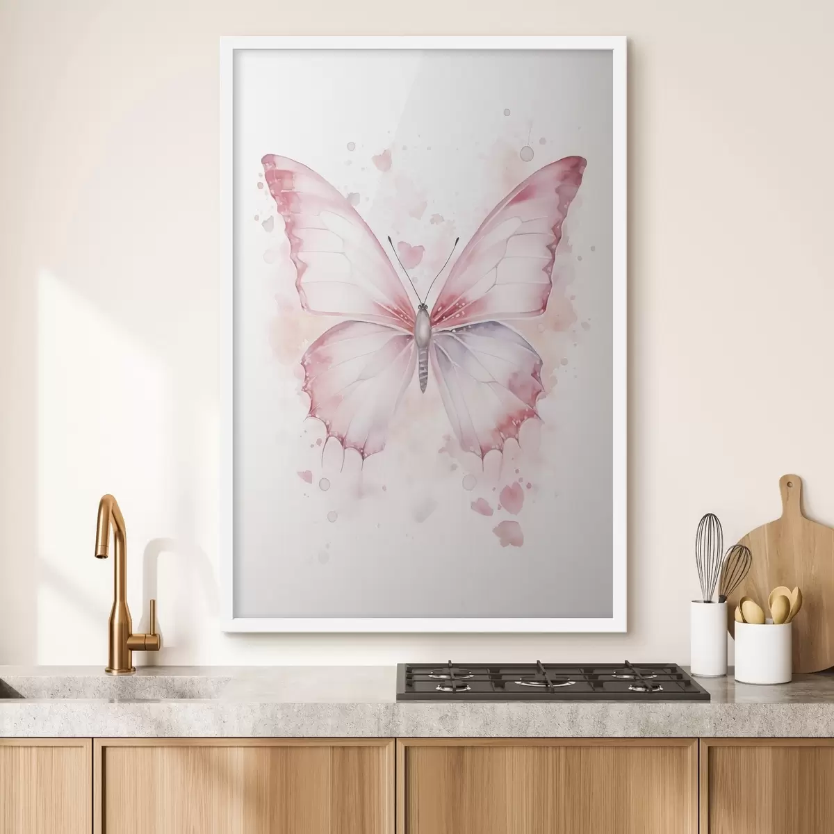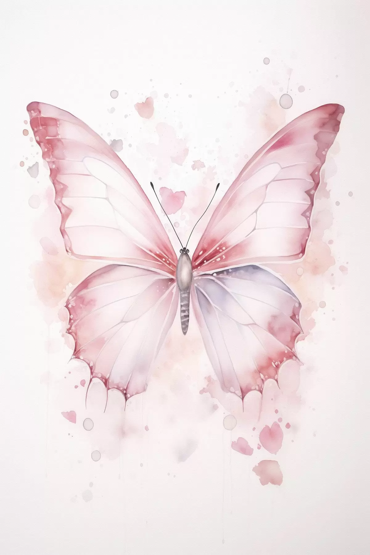 Poster Różowy motyl, technika akwarelowa Nr f46073