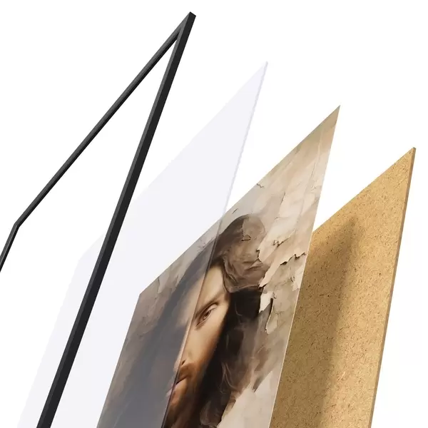 Plakat składa się z ramy, pleksi, wydrukowanego obrazu i podkładu z płyty wiórowej. Plakat można natychmiast zawiesić na ścianie dzięki uchwytom z tyłu.