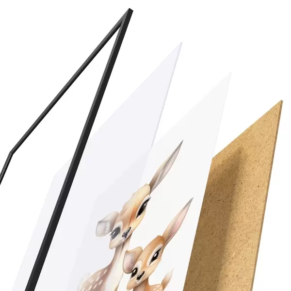 Plakat składa się z ramy, pleksi, wydrukowanego obrazu i podkładu z płyty wiórowej. Plakat można natychmiast zawiesić na ścianie dzięki uchwytom z tyłu.